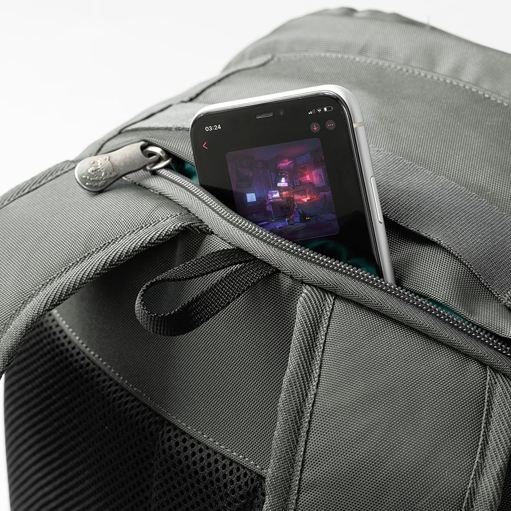 Phía trên đỉnh balo được thiết kế khéo léo với một ngăn nhỏ, bạn có thể để ví tiền, điện thoại,..đều được.