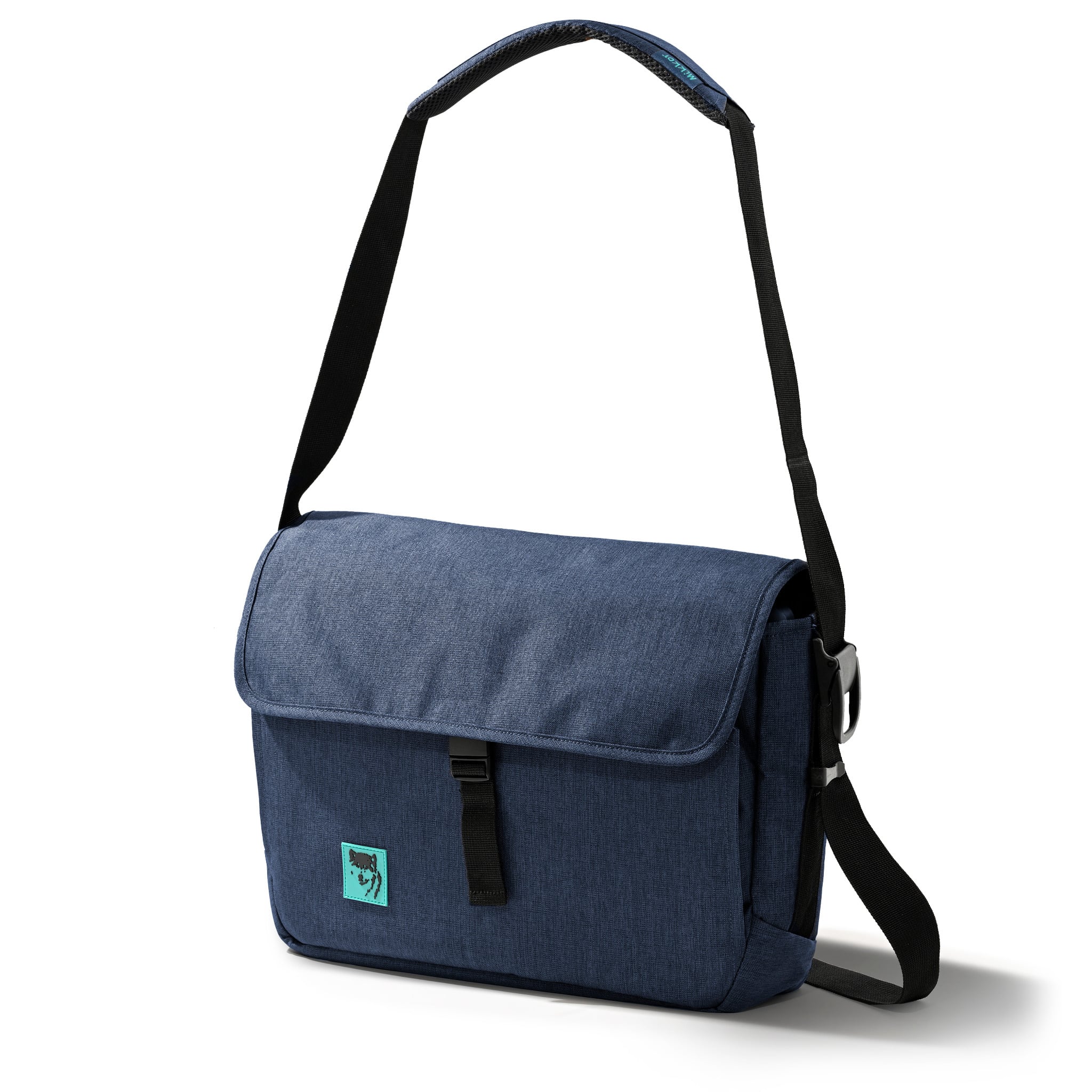 Mặt trước balo đính logo PVC chú sói biểu tượng thương hiệu MIKKOR nổi bật.