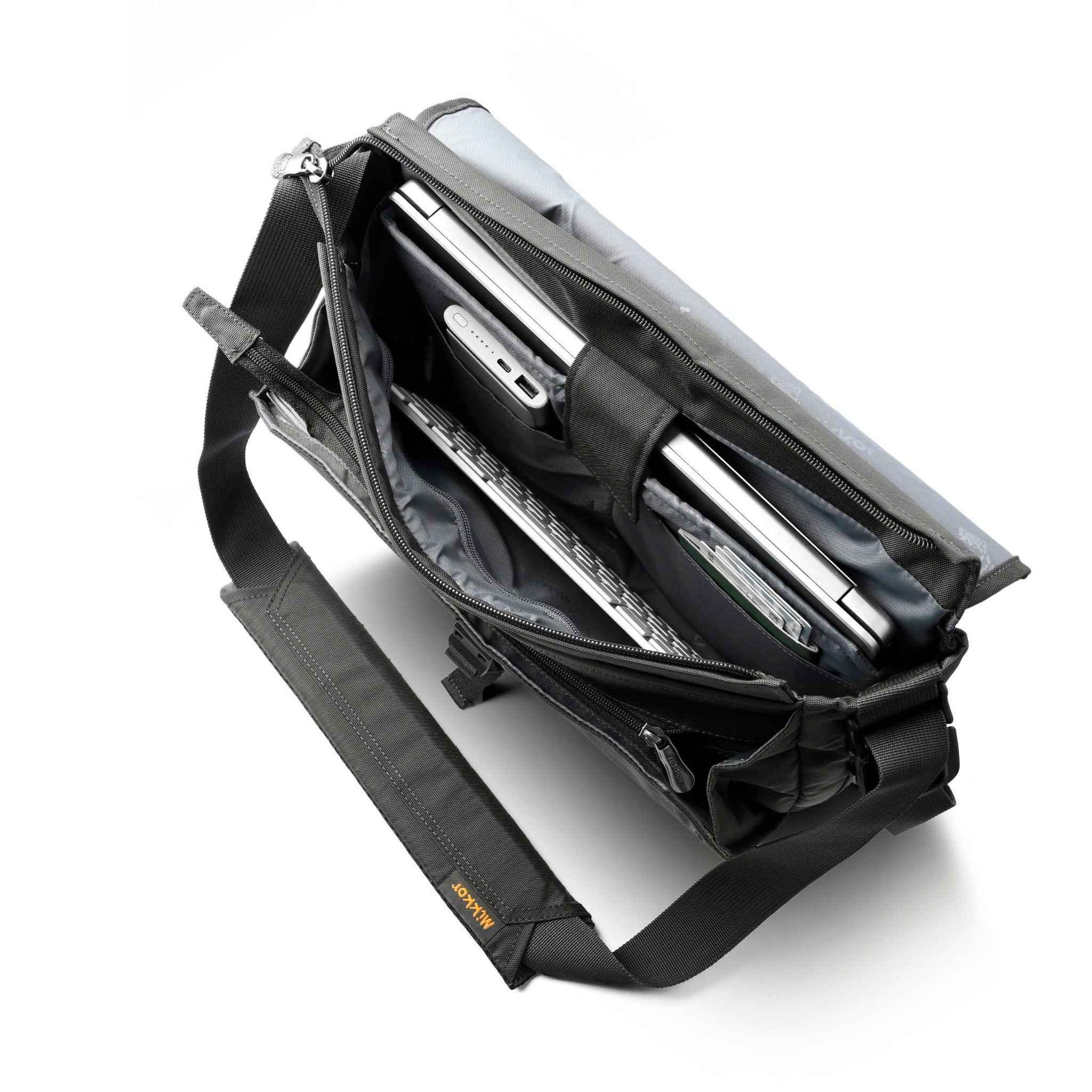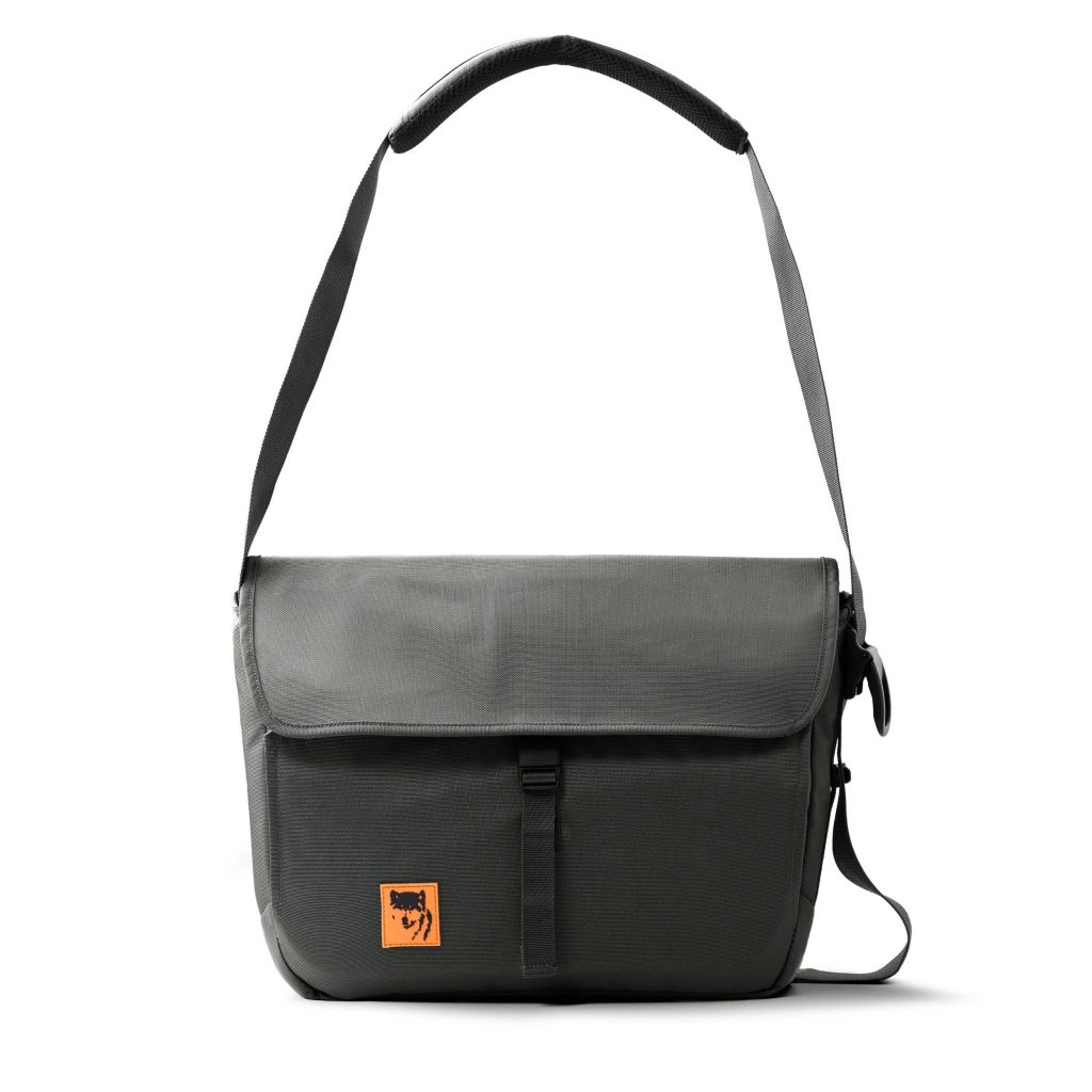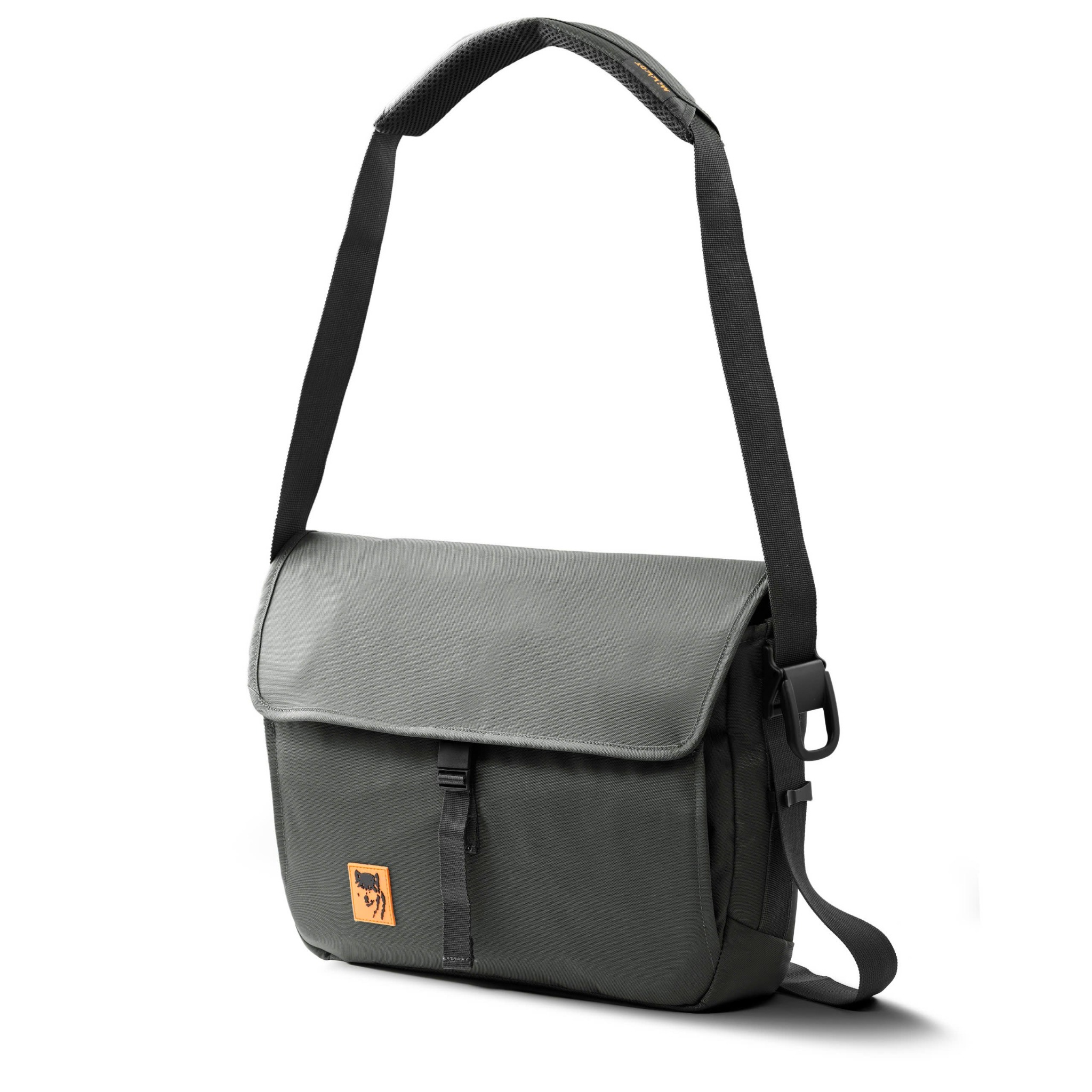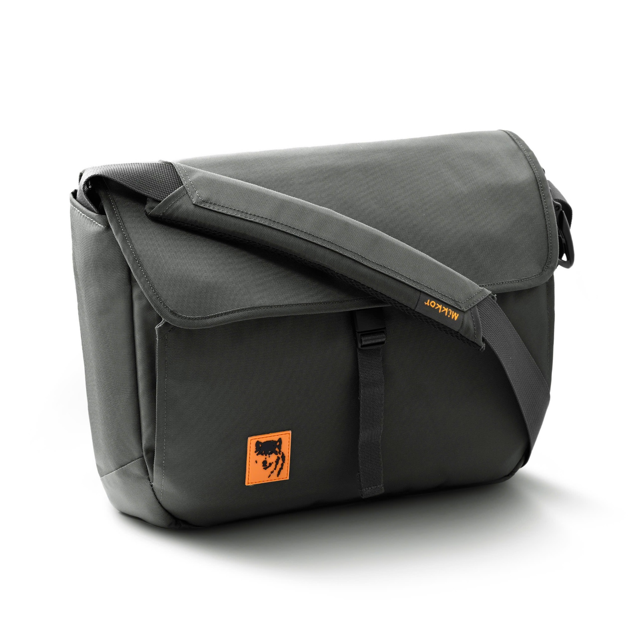 Mặt trước balo đính logo PVC chú sói biểu tượng thương hiệu MIKKOR nổi bật.